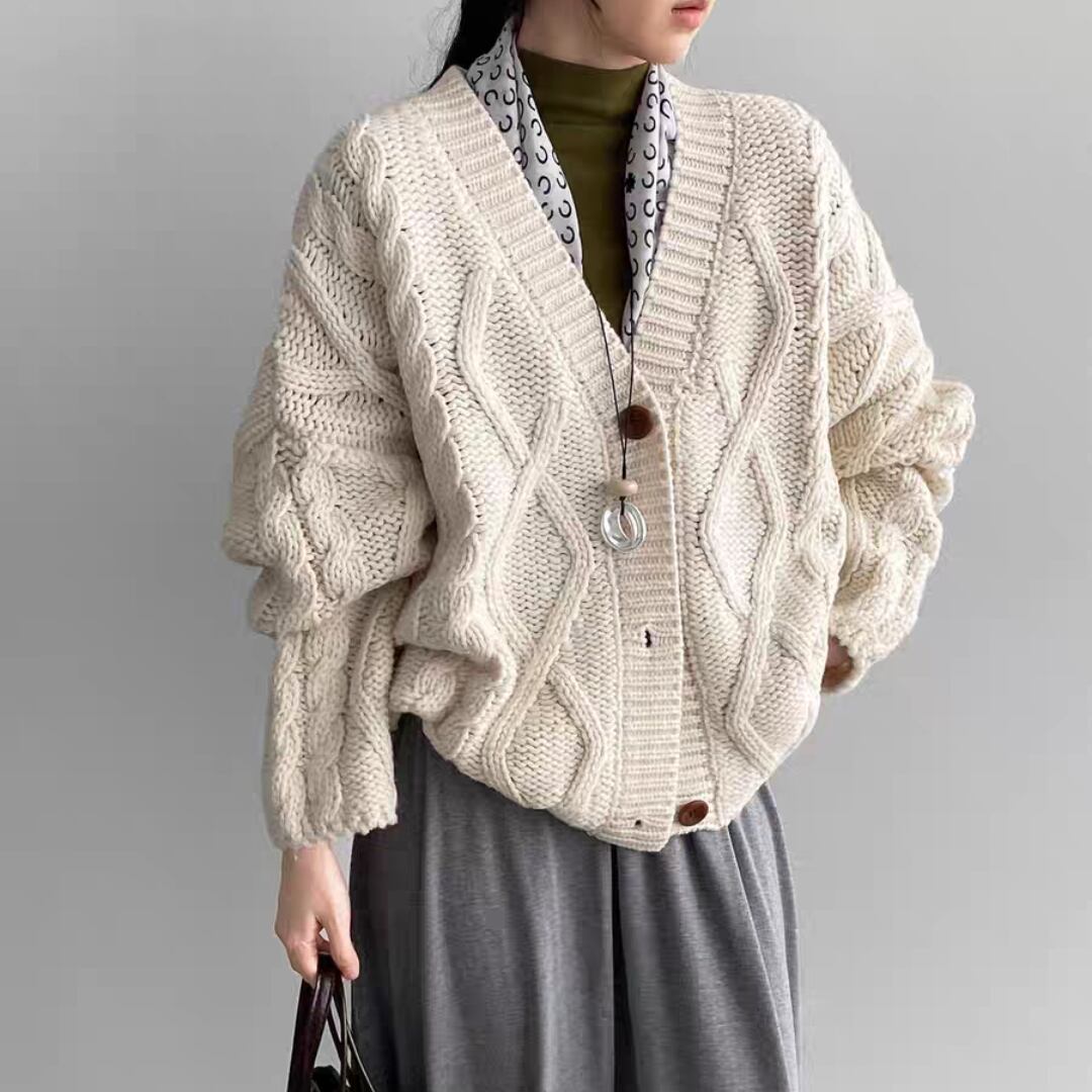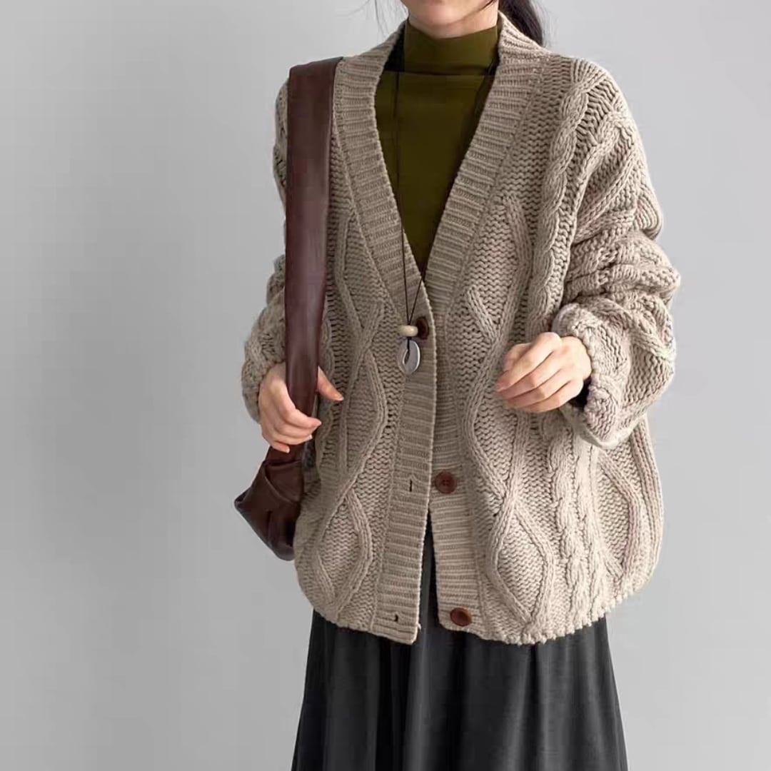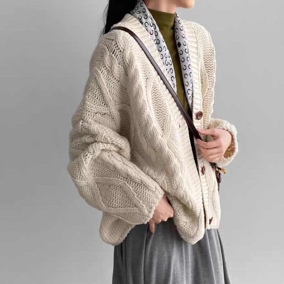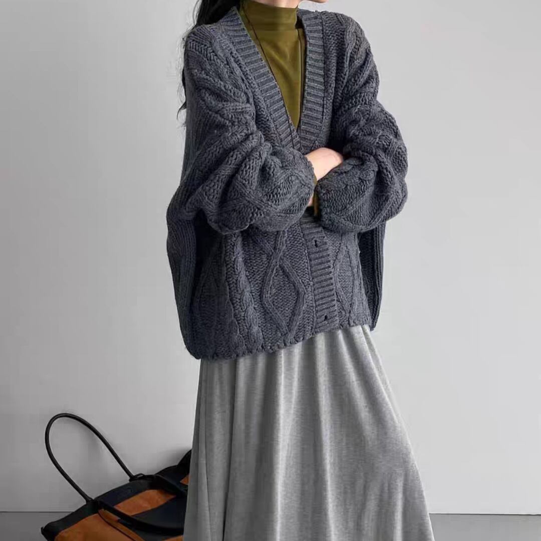 ふんわりとしたボリューム感が魅力のケーブル編みカーディガン。