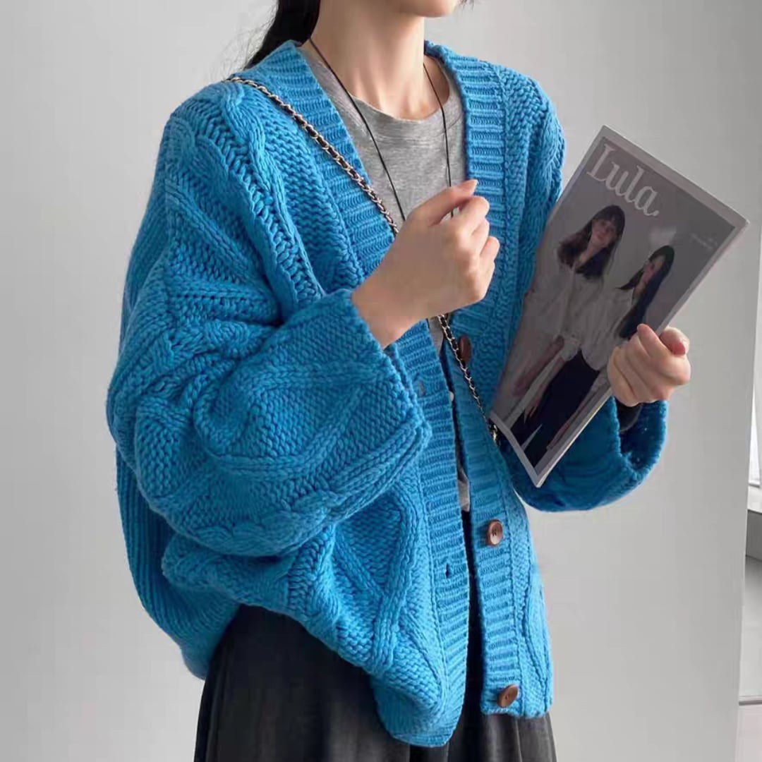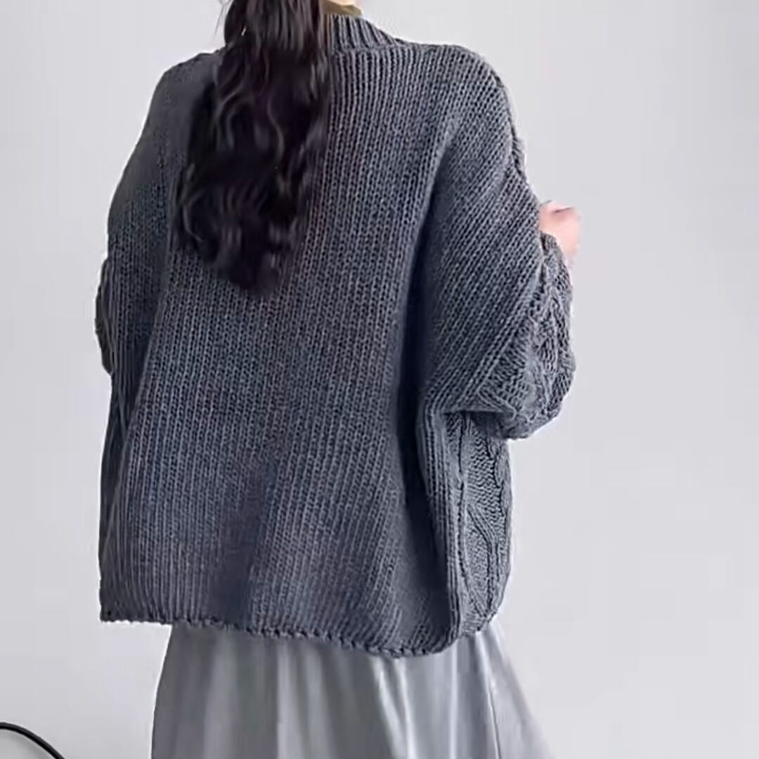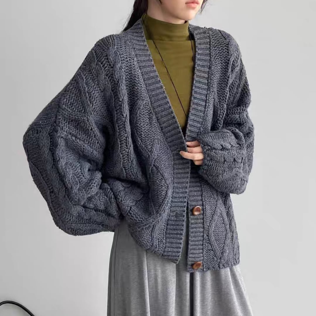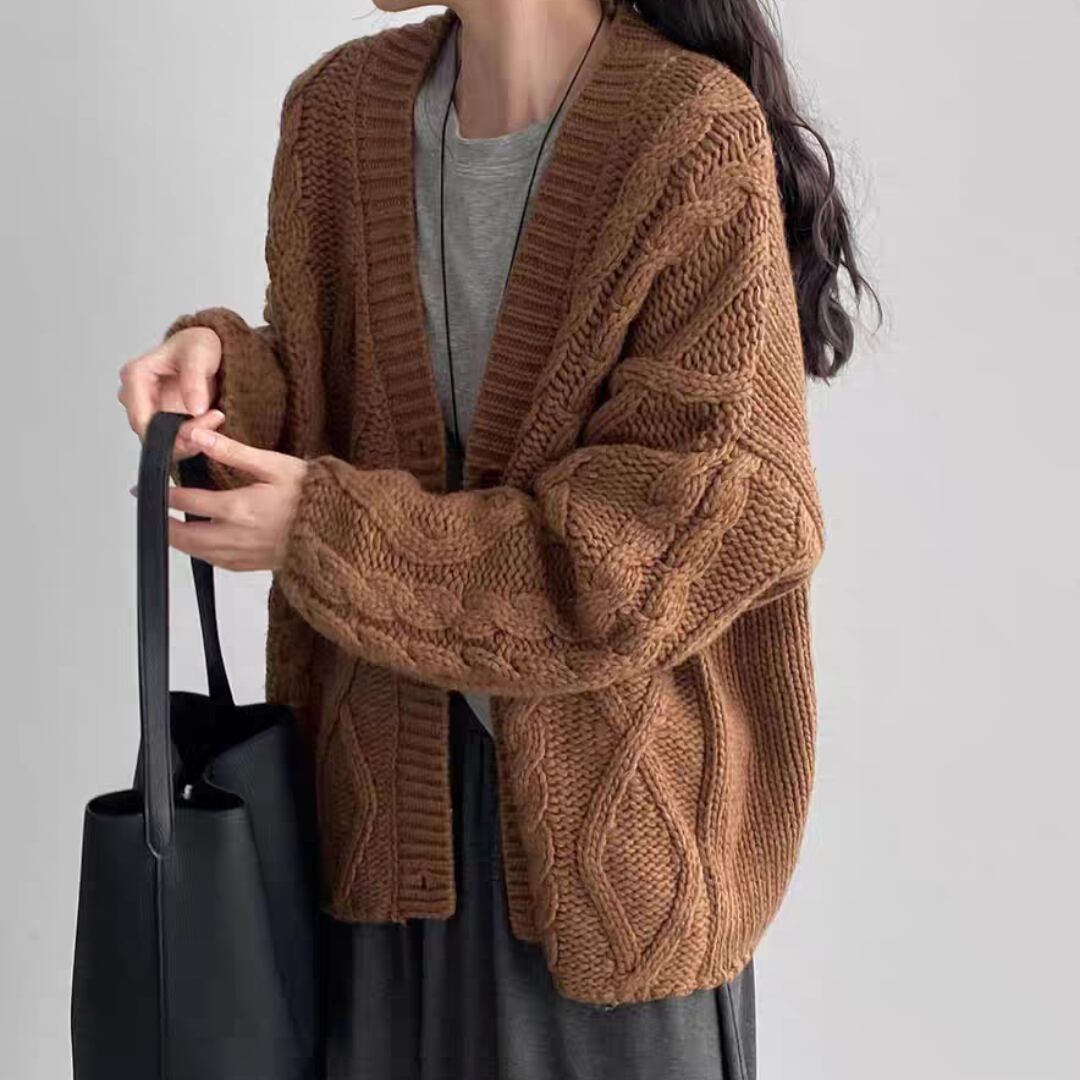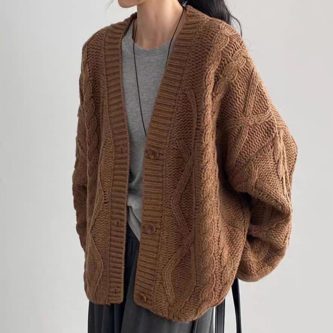 ふんわりとしたボリューム感が魅力のケーブル編みカーディガン。