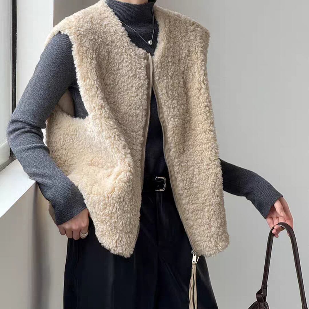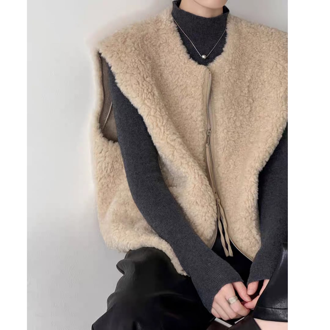 ふんわり柔らかな肌触りが魅力のボアフリースベスト。