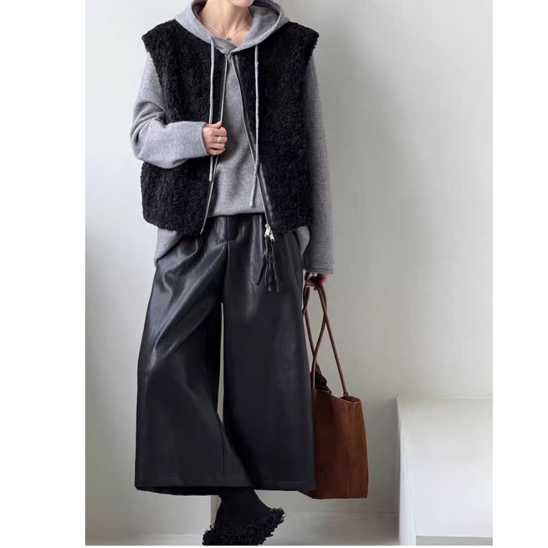 シンプルながら立体感のあるモコモコ素材が、コーディネートに程よいボリュームをプラス。