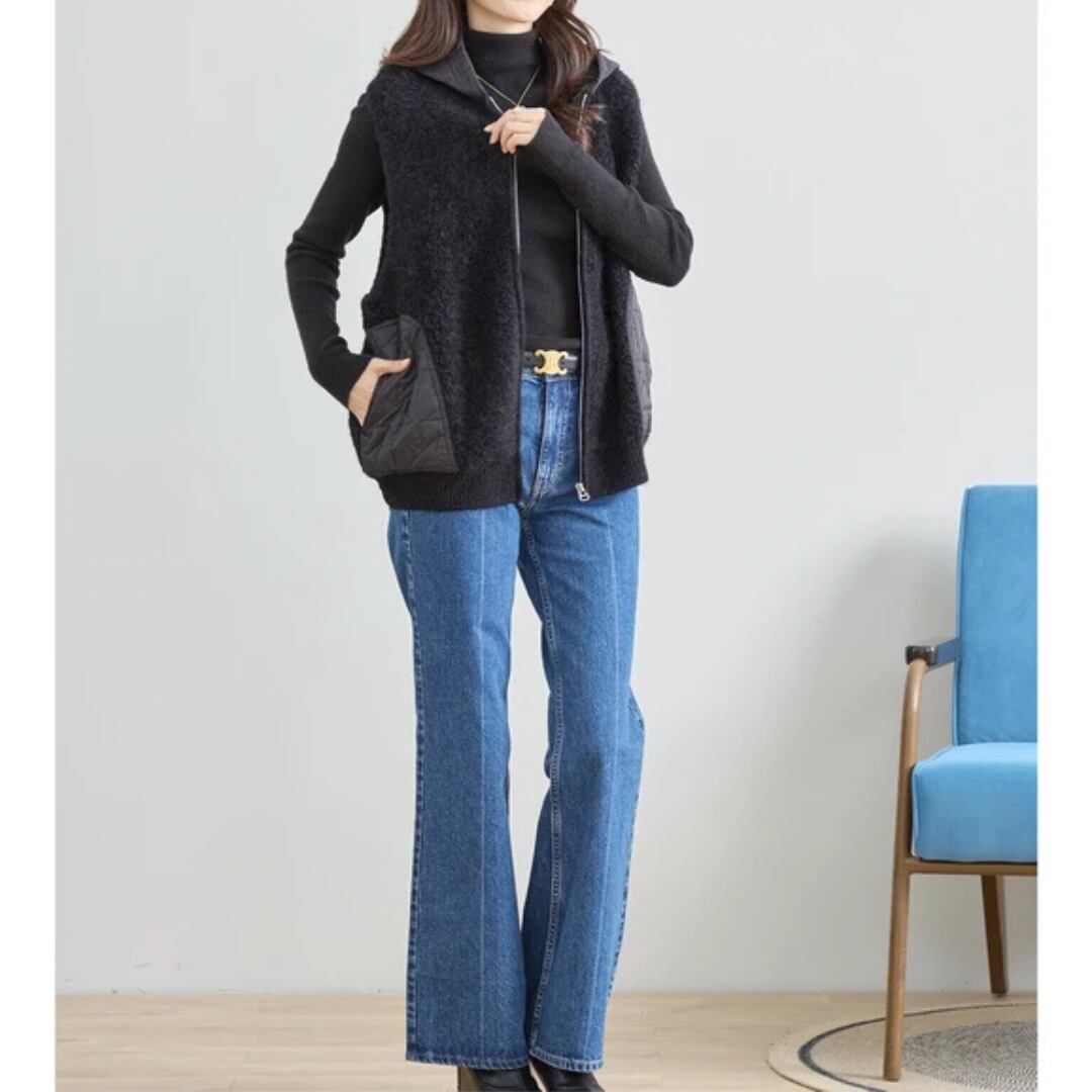 フードとポケットはキルティング生地で切り替えられた異素材デザインがポイントです。