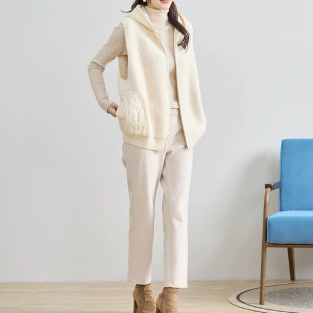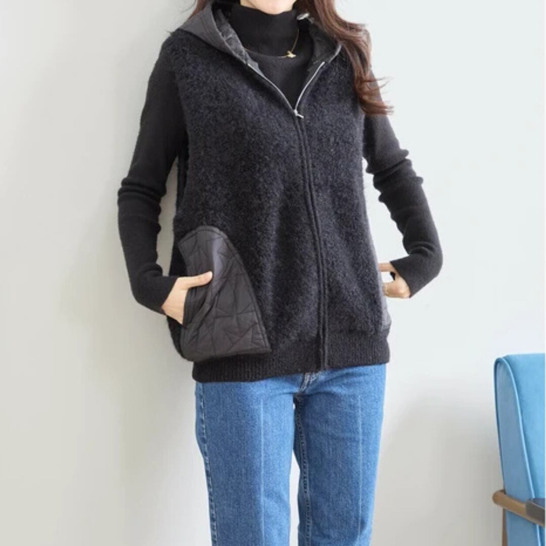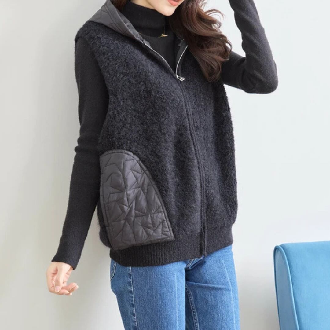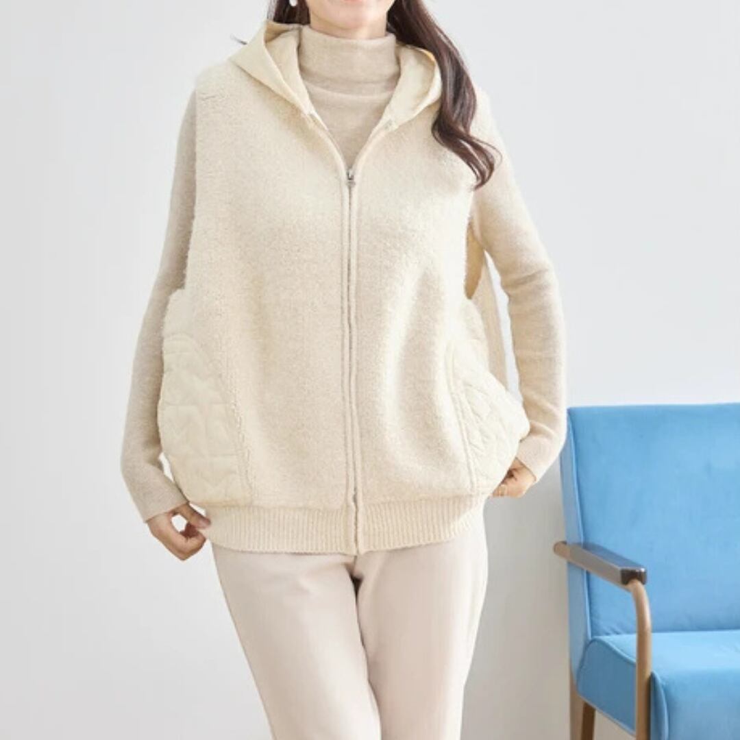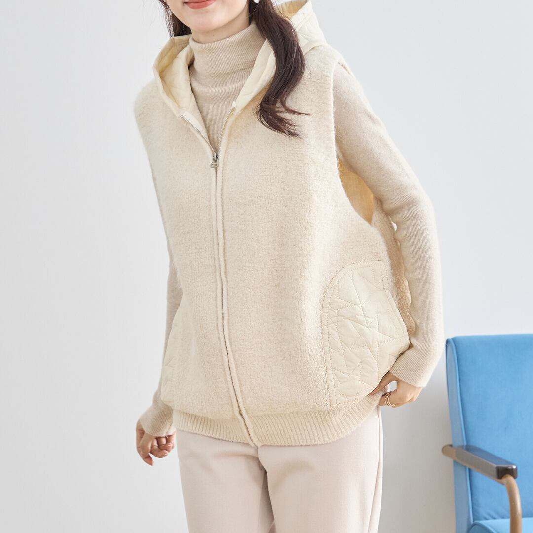 星柄キルト切替フード付きベスト 0284