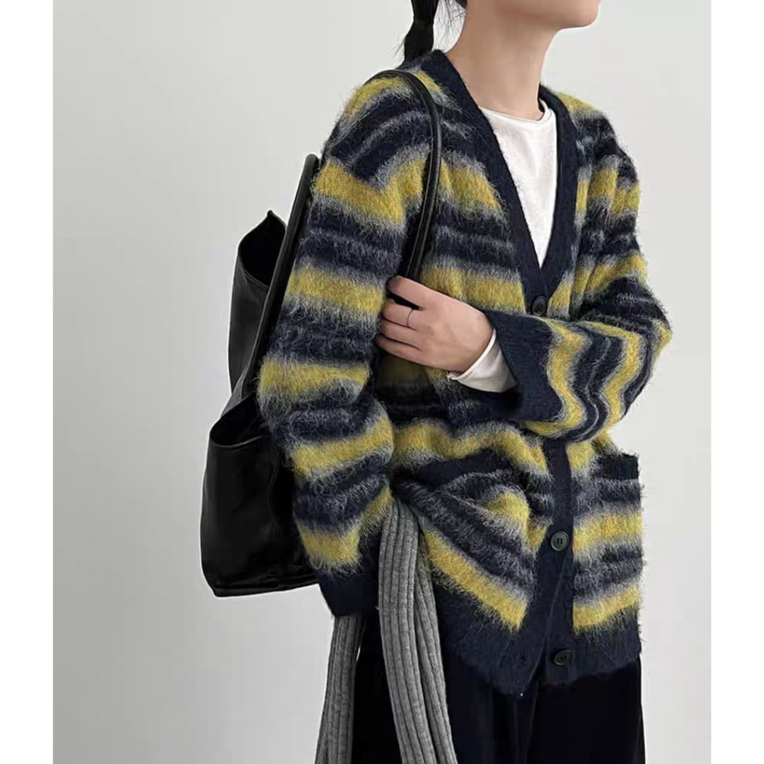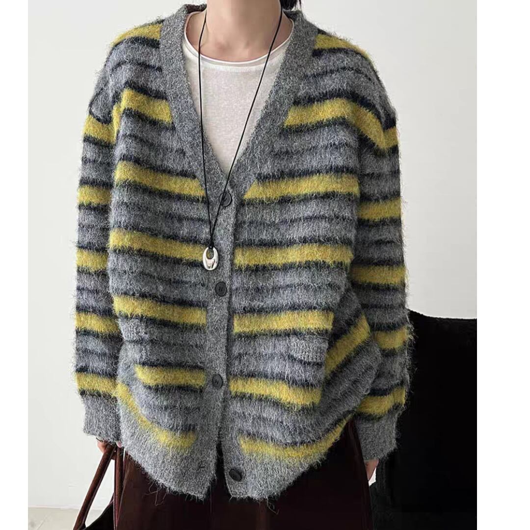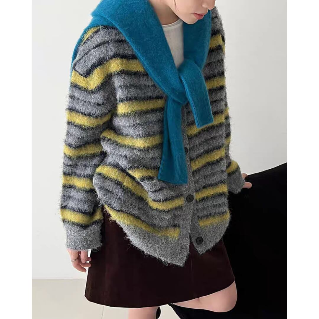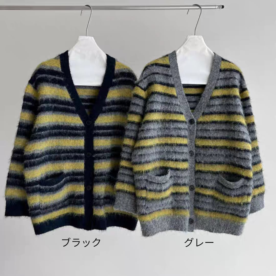 ふんわりとした毛足が魅力の、シャギーボーダーカーディガン。