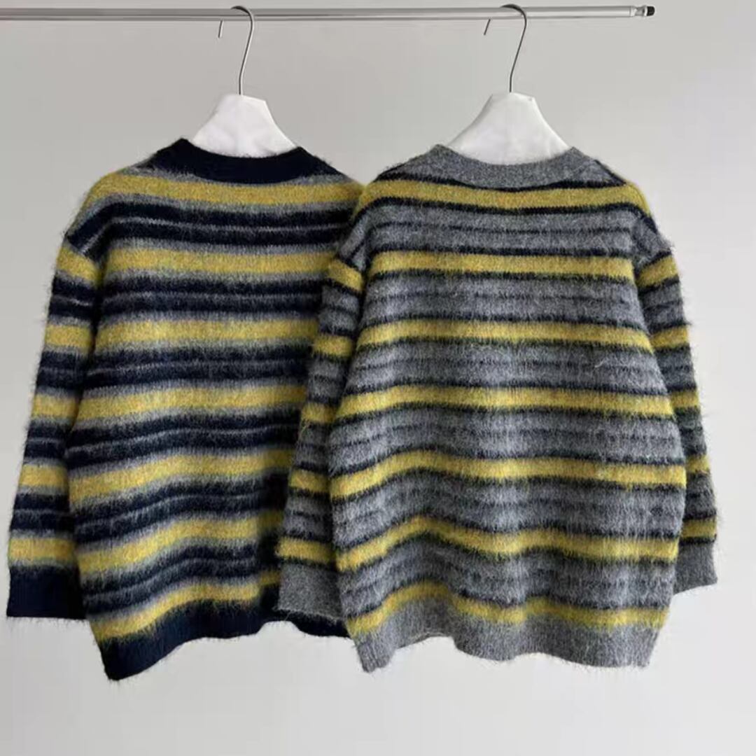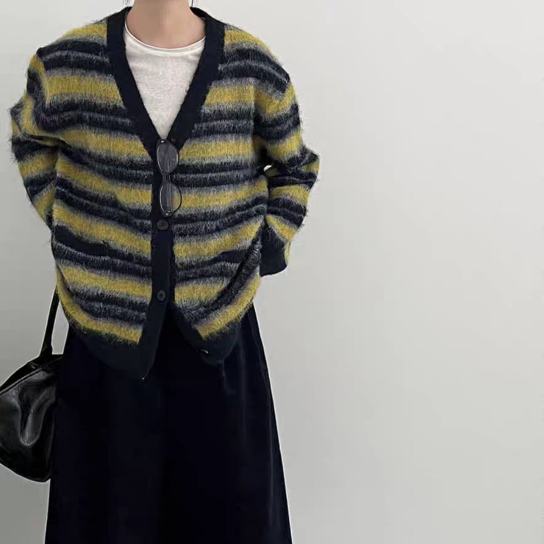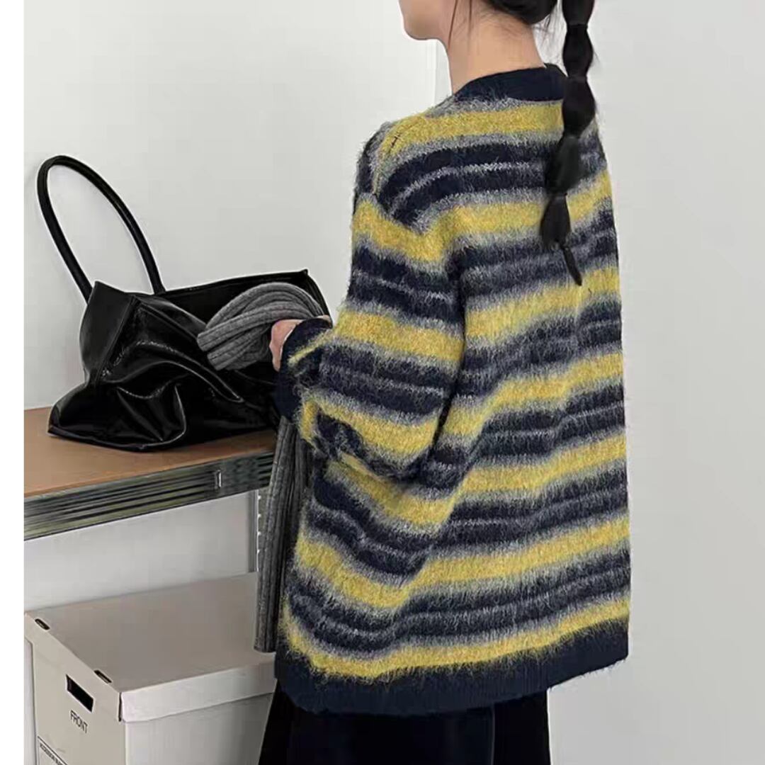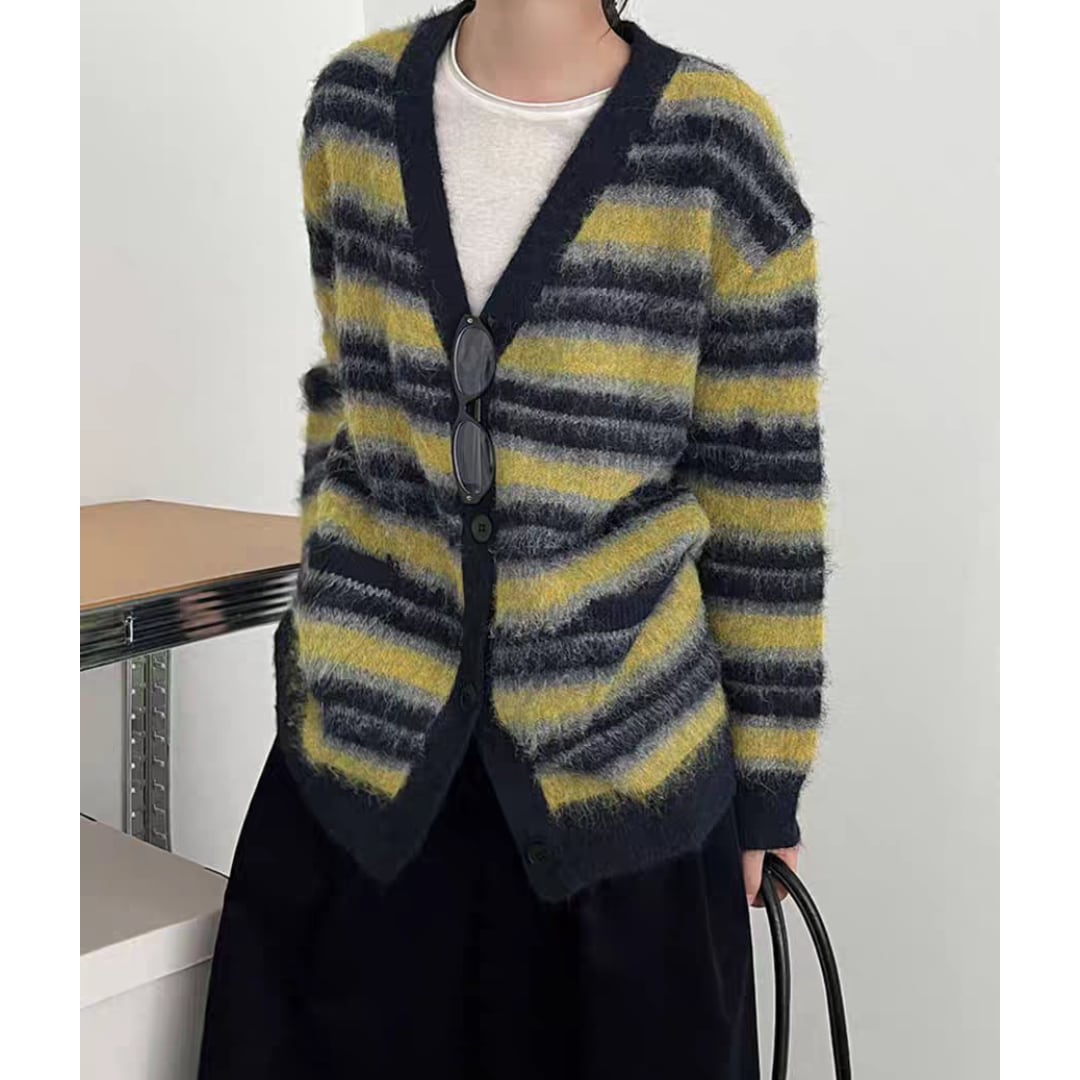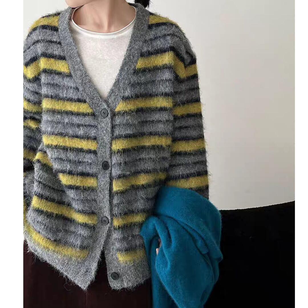 ふんわりとした毛足が魅力の、シャギーボーダーカーディガン。