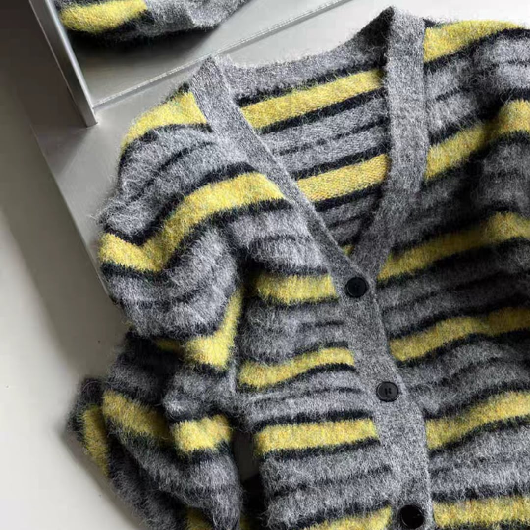 やわらかなモヘアタッチ素材で軽くあたたかく、羽織るだけでシーズンムードを高めてくれます。