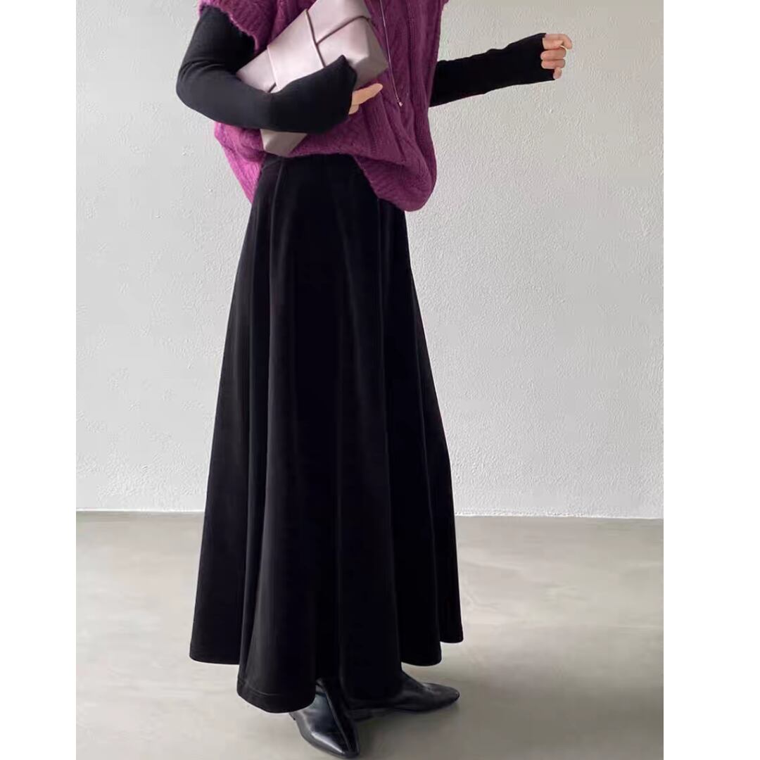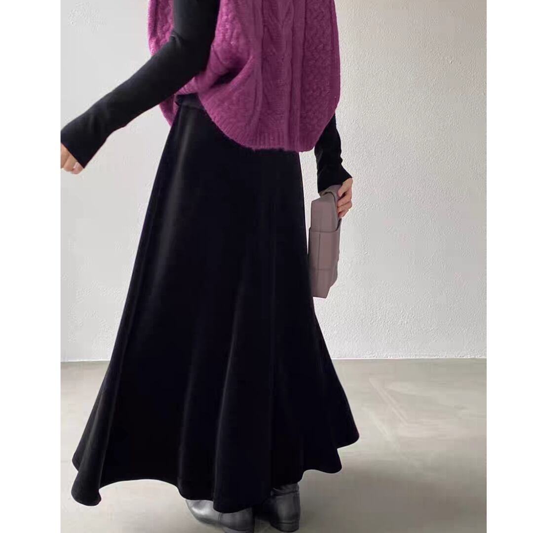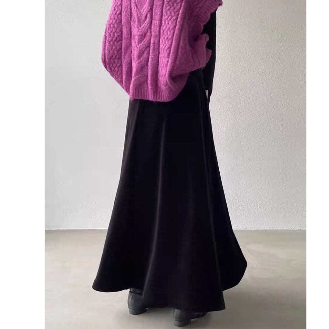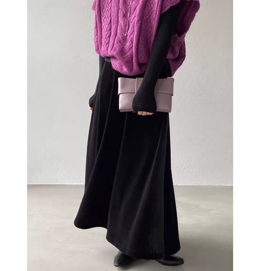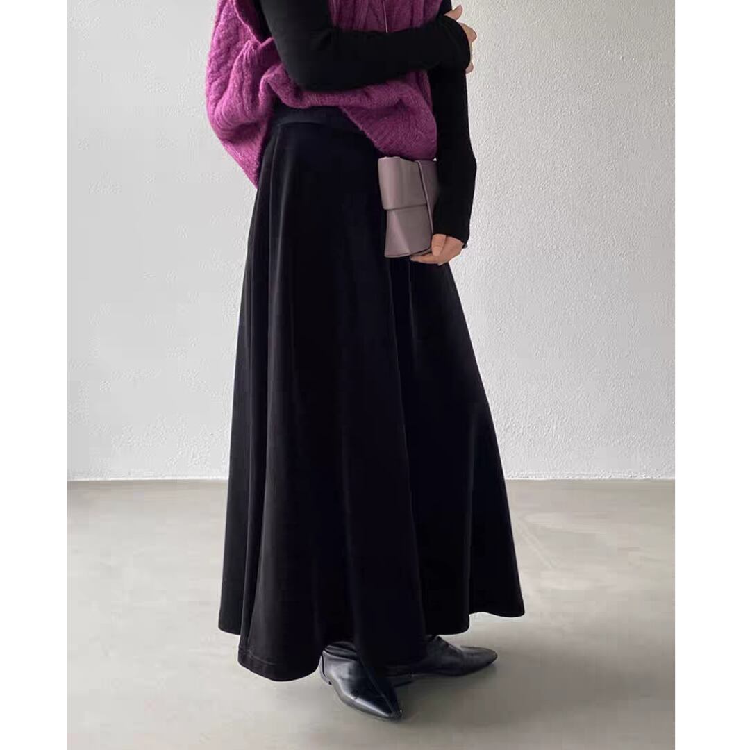 やわらかく伸びのある生地に、なめらかな裏起毛を施した冬の定番スカート。